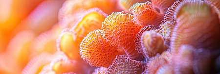 close-up of coral polyps with extended tentacles capturing prey, created with generative ai