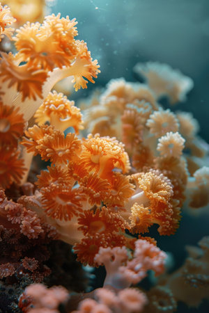 Discover a stunning underwater scene featuring vibrant coral and anemones. This image captures the serene beauty of marine life in rich detail, showcasing colorful textures and the delicate ecosystem of the ocean depths.