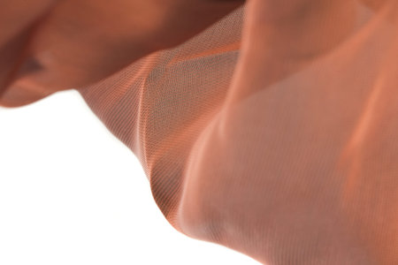 Transparent white silk soft fabrics floating with light shining through, shadows and shades reflected on the textile, close view.