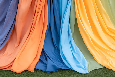 This image showcases vibrant draped fabrics in warm and cool tones, perfect for textile, fashion concepts, or creative photography projects.