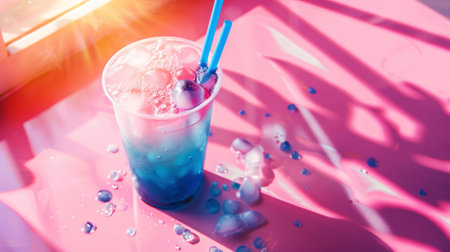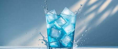 AI Generated. Refreshing blue drink with ice splashes captured in a dynamic moment during a sunny day