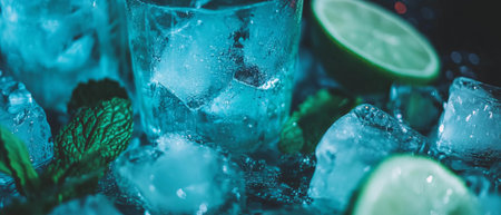 Refreshing sparkling water with ice cubes and mint leaves in a vibrant setting