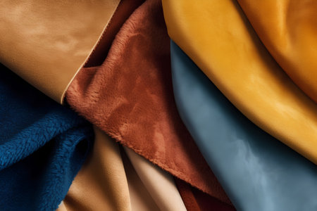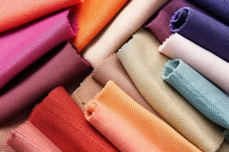 A vibrant array of textile fabric swatches in various colors and textures, perfect for sewing, crafting, or home decor projects with creative potential.