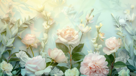 mix of flower in soft romance yellow background for header or banner design with copy space