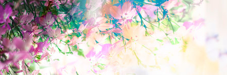 Silhouettes of summer wildflowers on pastel background with airy composition. Ideal for overlays, design and beauty themes Banner