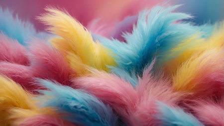 This captivating image features an array of pastel-colored fur textures seamlessly blending together, creating a dreamy and soothing abstract art piece that draws the viewer in with its vibrant and soft hues, perfect for artistic stock use.
