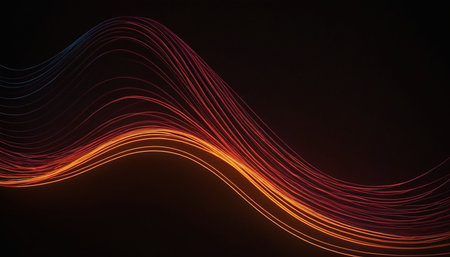 Dynamic, colorful light trails in wavy patterns against a dark gradient background.