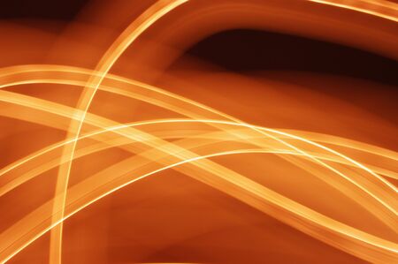Abstract orange light lines on a black background. Shallow depth of field. Unusual glowing of chaotically stacked thin light wires, red glowing tourniquet, illuminated.