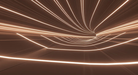 A computer generated digital illustration of an abstract futuristic bright colourful neon light trails energy style swoosh background.