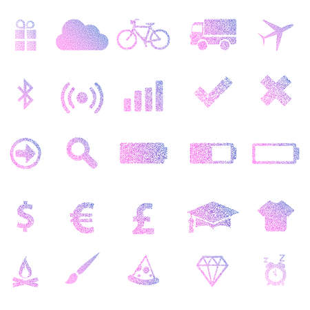 Colored icons set in the form of dots blue-red gradient. Neon graphic, light effect. Dotted illustration isolated on a white background. Vector illustration.