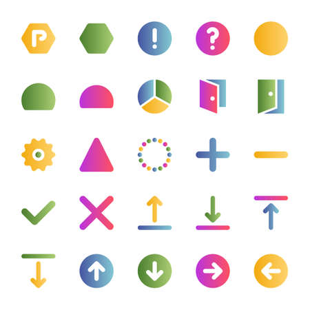 Icon set multi colored button in flat style. Easy editable vector isolated illustration.