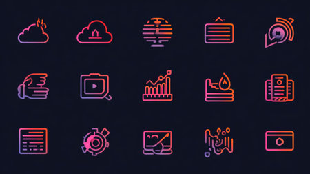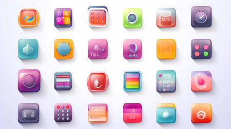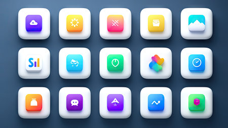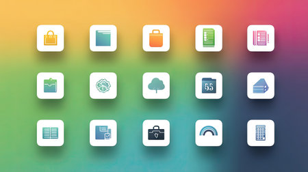 A vibrant collection of digital icons displayed on a soft background, perfect for enhancing user interface designs and showcasing modern technology applications.