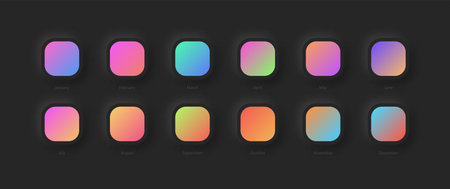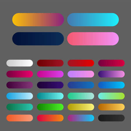 Modern Vivid Color Gradients Set For UI Design Vector On Dark Neumorphic Abstract Background. Different Variations Gradient Schemes For Graphic Design And Web Or Mobile Application
