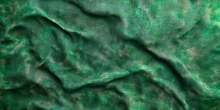 Shiny green emerald crumpled fabric texture. Elegant cloth background