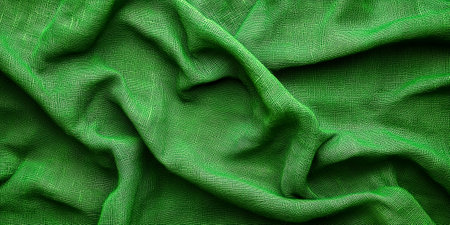 A detailed macro shot of a rich forest green fabric, showcasing its intricate woven texture. The is captured with soft folds and gentle drapes, highlighting the subtle play of light and shadow across its surface. The deep, natural green hue evokes a sense of organic luxury and sophistication. This close-up view emphasizes the and tactile nature of the textile, making it use as a background, texture sample, or for applications in fashion, interior or crafting where detail is paramount.