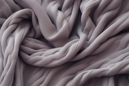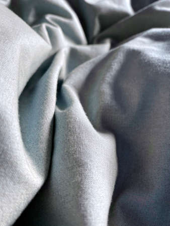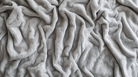 A close-up image showcasing a soft gray fabric texture featuring intricate wrinkles and folds. Ideal for cozy home decor themes and textile backgrounds.