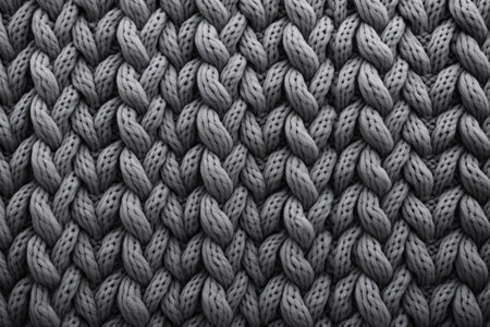 A closeup of a knit sweater showcasing the raised loops of the yarn. Black and white art.