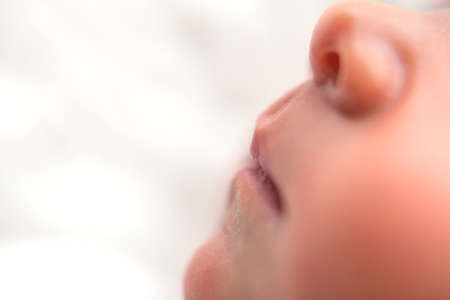 nose and lips of newborn close up. Baby face features macro photo. Blurred image. Without focus.