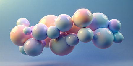 Abstract 3d rendering of spheres in pastel colors with soft shadows