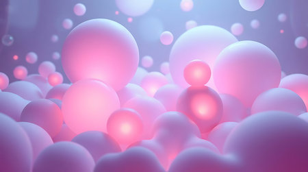 abstract glowing spheres, blue and pink colors, futuristic background, digital art, D rendering, soft focus, depth of field, creative concept of light and space, vibrant atmosphere