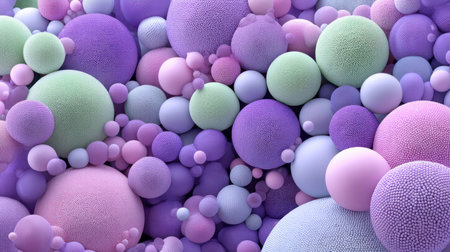 A captivating arrangement of multicolored spheres in shades of purple, green, and pink, featuring unique textures and patterns. Ideal for abstract design.