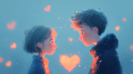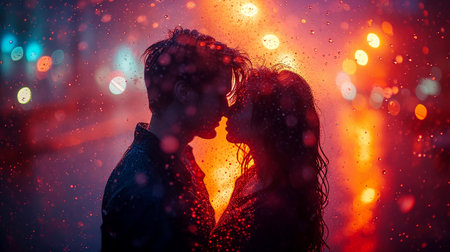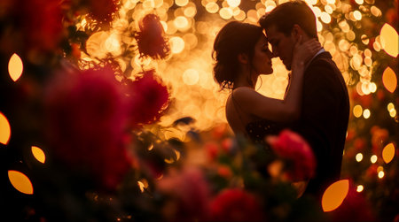 Backlit couple basks in soft glow of heart-shaped lights, revealing intimacy in every breath. Intimacy glimmers through gentle connection, intimacy becomes key selling point for romantic campaigns.