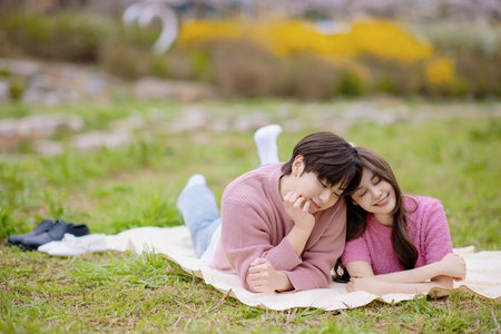 Beautiful young couple smiling and bonding while spending together : Generative AI
