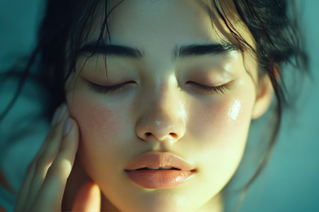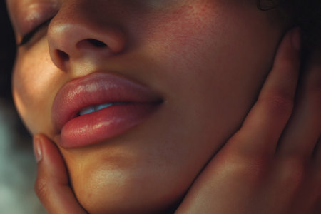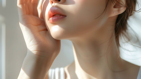 This close-up image beautifully highlights smooth skin with a natural glow, emphasizing the importance of skincare and healthy beauty in a serene setting.