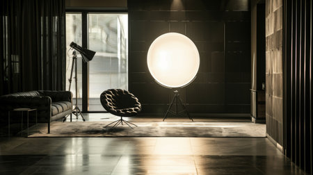 A close - up view of a modern photo studio, showcasing the professional equipment and setup. Generative AI