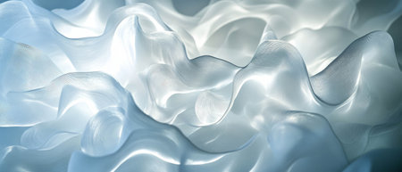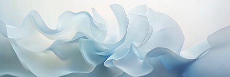 Delicate layers of light blue fabric undulate gently, combining softness and elegance to evoke a calm and tranquil environment.