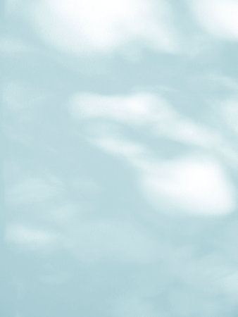 Minimalistic abstract gentle cyan background for product presentation with light and intricate shadow from tree branches on wall with Generative AI.
