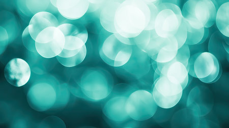 Abstract bokeh background in blue-green tones, macro shot, soft circles with gentle light transitions and space for text or copy.