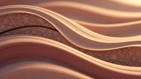 Ethereal abstract digital creation blending fluid gradients in warm pastel pinks with delicate wavy motifs and diffused soft lighting to evoke tranquility and subtlety. Perfect for luxury spa promotions, bridal stationery, cosmetic packaging, and serene app interfaces targeting wellness and beauty sectors. Its elegant, calming aesthetic delivers high commerci... AI-generated digital illustration. AI-generated illustration.