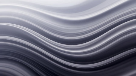 Abstract flowing waves in shades of grey and white create a smooth, fluid motion with subtle light and shadow gradients.