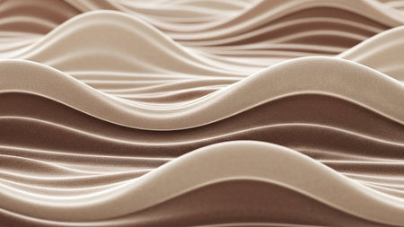 Layered undulating waves of warm beige and brown fabric textures create a rippling landscape effect with subtle depth and smooth curves.