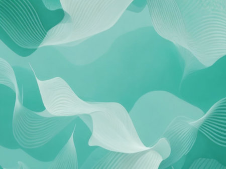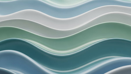 145442 showing smoothly undulating waves of pastel blue green and white layers creating a serene abstract background...