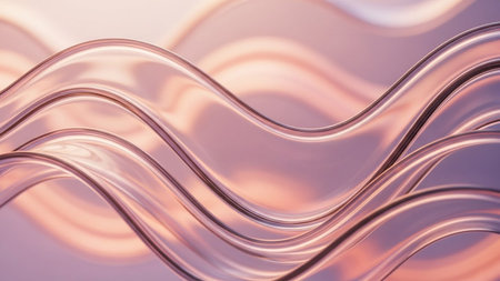 Translucent rose gold waves flow with soft light and subtle reflections, creating a delicate, shimmering abstract...