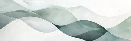 A minimalist abstract composition layered, wavy shapes in muted sage and light green, creating a sense of smooth, flowing depth.