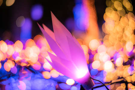 Image of night festival on street blurred background with bokeh, bulb lighting twilight, concept of chrismas lighting.