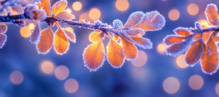 Winter wonderland bokeh lights and frost covered ground scene