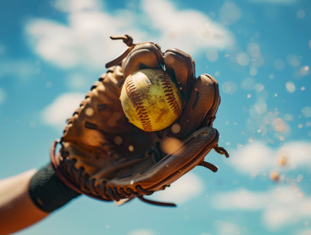 Blue baseball glove hits success on dirt outfield in summer generated by artificial intelligence