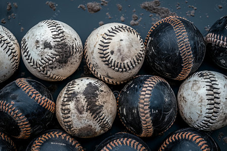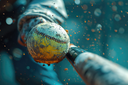 Close-Up of a Worn Baseball and Old Leather Glove with Dynamic Bokeh and Water Drops Effect