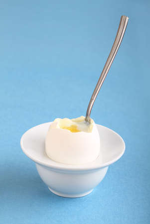 Image of soft boiled egg on a blue background