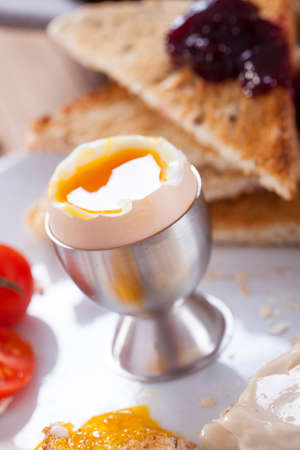 Series on boiled duck egg for breakfast, with toast soldiers