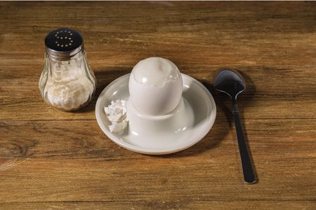 Boiled egg on white and blue Delft porcelain