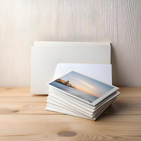 A stack of blank photo cards. perfect for showcasing your own images or artwork! These cards are ideal for photographers. artists. or anyone looking to create a professional and stylish presentation.