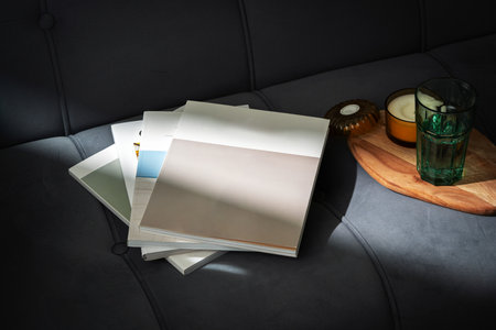 Glass of Water on Open Magazines Resting on a Couch