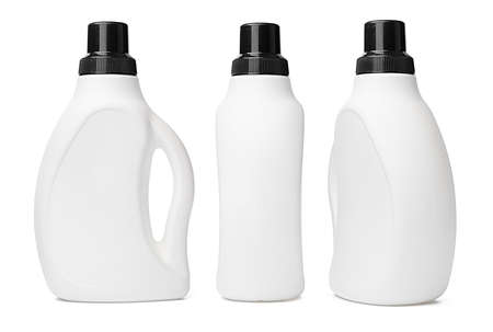Black Detergent plastic bottle with chemical cleaning product isolated on white background.