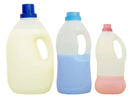 Plastic bottle with dishwashing detergent. Household chemicals.