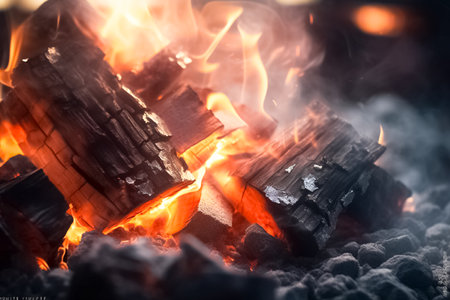 Captivating flames and glowing embers on a bed of hot coals with ample copy space available